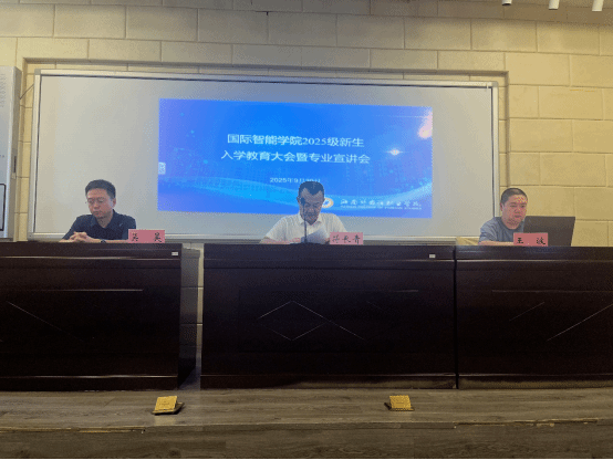 2025年9月30日上午,海南外国语职业学院国际智能学院2025级新生入学教育大会暨专业宣讲会在综合楼AE101学术报告厅隆重召开。国际智能学院书记符长青、院长王波教授、副院长吴昊以及国际智能学院全体专任教师、辅导员和全体2025级新生共同参加了这场开启大学新篇章的重要活动。