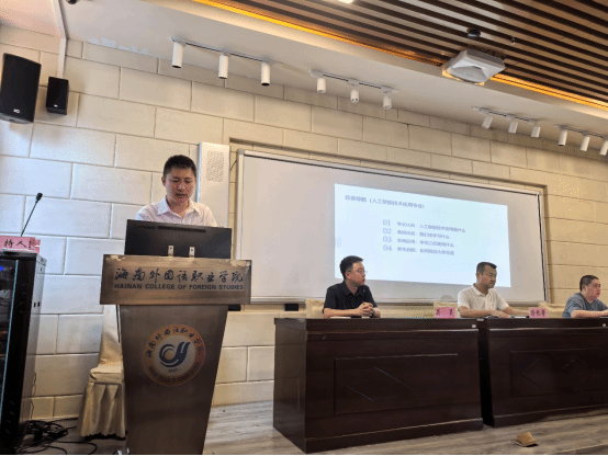 吴昊副院长就学业考核及相关要求作了讲话。他首先欢迎新同学选择在海南外国语职业学院开启人生新阶段,并指出大学是人生中黄金的探索期,既赋予学生前所未有的自由,也考验着大家驾驭自由的能力。吴昊副院长说“有些同学能将自由转化为个性化成长的养料,牢牢掌握大学生涯的主动权;而有些同学则可能在自由中迷失方向,错失宝贵时光。”他翔实地为学生们解读了学校的《学业考核管理办法》,让学生们做到心中有数,为未来的学习与毕业做好充分准备。同时在教学工作方面吴昊副院长强调,要持续提高实践教学比例,强化学生技术技能与创新能力的培养,做好学生竞赛梯队建设与备赛工作。