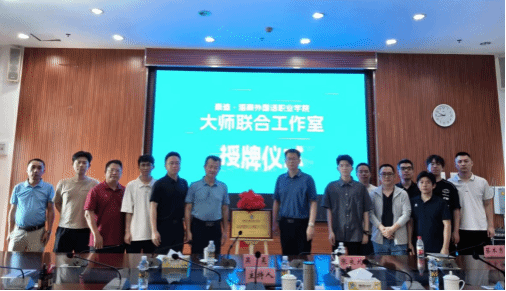 随后,双方完成了泰迪智能科技大师联合工作室签约、泰迪·海南外国语职业学院大师联合工作室授牌及海南外国语职业学院&泰迪智能科技校外基地挂牌等仪式,并合影留念。