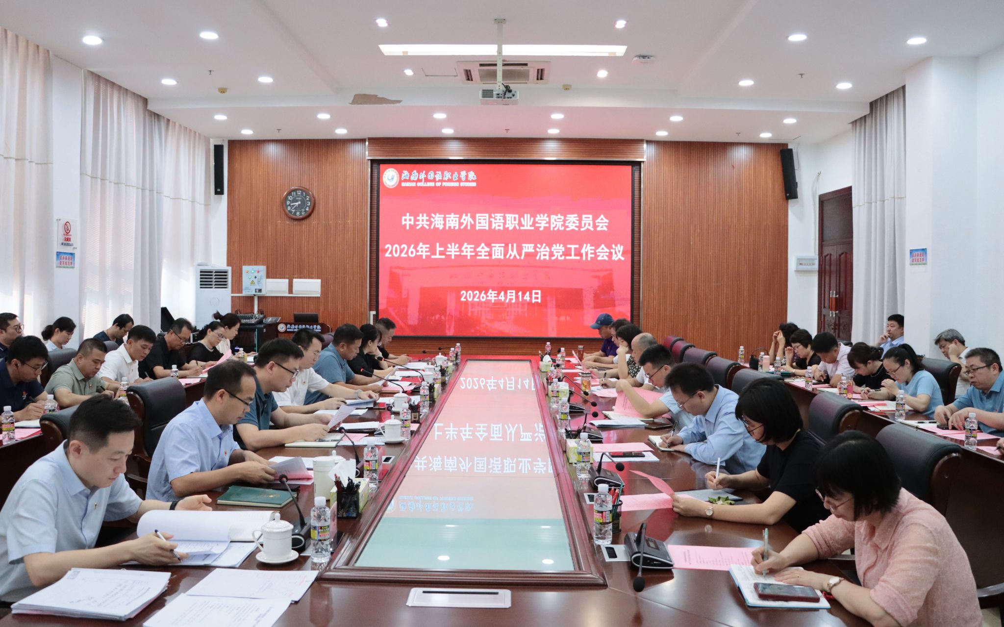 会上,黄学彬传达了习近平总书记在二十届中央纪委五次全会上的重要讲话精神,以及2026年全国教育系统全面从严治党工作会议精神;党委副书记雷浩泽传达了海南省纪委八届五次全会精神和2026年全省教育系统全面从严治党工作会议精神。全体与会人员观看了警示教育片,接受警示教育。