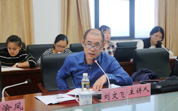 讲座前,李渝凤院长致欢迎辞,向刘文飞教授的到来表示欢迎和感谢,指出此次讲座是我院教师向专家“取经”的好机会,希望大家认真聆听专家指导,不断提高自我,为我院服务国家“一带一路”倡议实施和海南国际旅游岛服建设,以及实现我院未来发展愿景奠定坚实的基础。