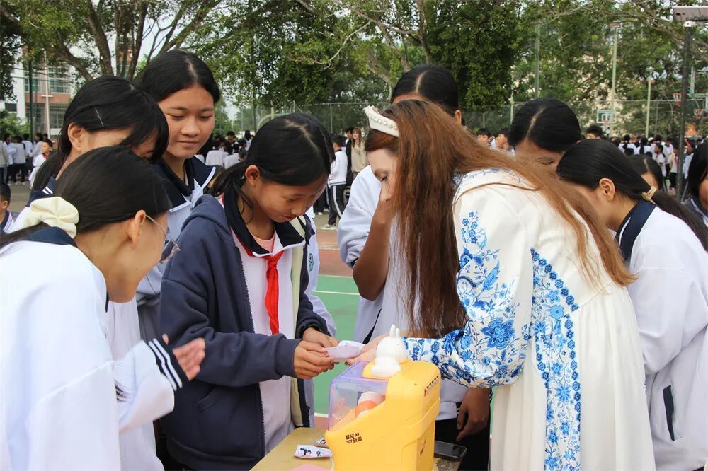 随后,趣味互动环节在学校篮球场正式开启。飞镖游戏、英语扭扭蛋、掷骰子、盲盒游戏等多样化的互动游戏同步开展。学生踊跃参与,在轻松愉悦的氛围中巩固了基础词汇与句型,有效锤炼了英语听说能力和临场应变能力,团队协作的默契也在互动中不断提升。游戏进行时,学生们的英语表达、外教老师耐心的引导、鼓励和认可的答复,让学生们对英语学习充满了兴趣和探索的欲望,也让师生们的互动充满了欢笑,活动现场洋溢着欢快的气氛。