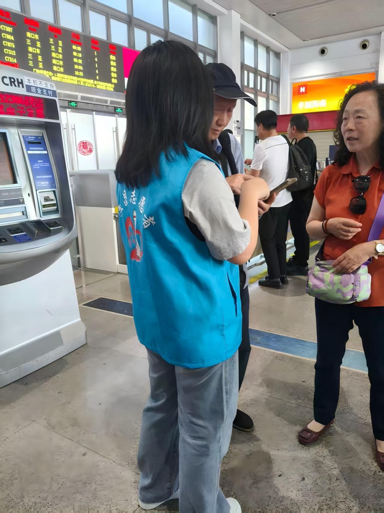 在服务过程中,我发现前来车站的旅客大多是“候鸟老人”。他们中的许多人不太熟悉手机购票的操作流程,于是我和其他志愿者便会耐心地教他们如何使用手机购票。每当帮助他们解决问题后,总能收到一句温暖的“谢谢”。候车时,老人们还会和我们聊天,热情地分享家乡的美景与趣事,邀请我们有机会去他们的家乡走走看看。他们常说:“现在有你们这些年轻人教我们用手机买票,真是太贴心了!”每一次听到这样的感谢,我的心中都会充满幸福感与成就感,也让我更深切地体会到,志愿服务的意义就藏在这些平凡却温暖的互动里。这份“赠人玫瑰,手有余香”的充实感,远比单纯的闲暇时光珍贵得多。它让我明白,青年的价值正体现在这些看似微小的奉献中,点点微光汇聚起来,便成了足以温暖寒冬的蓬勃力量。