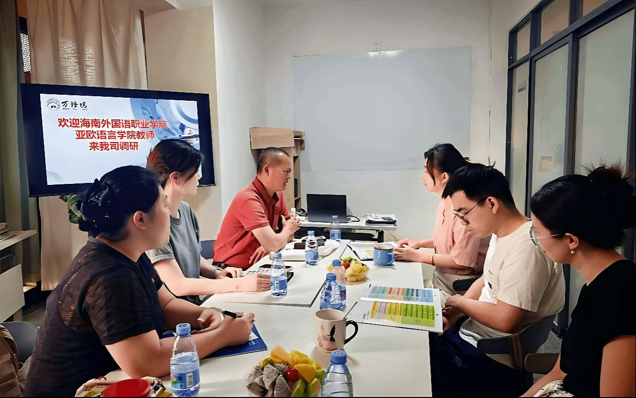 为深入推进产教融合、校企协同育人,拓宽学生实习就业渠道,优化外语类人才培养模式,精准对接市场对复合型语言人才的需求,2026年4月14日,海南外国语职业学院亚欧语言学院教师代表赴万语境外语培训有限公司开展访企拓岗专项洽谈。双方围绕语言培训、校企合作深化、双元制项目落地等核心议题深入交流、凝聚共识,明确合作方向并达成多项合作意向。