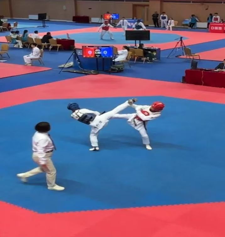 2025年11月16日,第20届中国大学生跆拳道锦标赛(北方赛区)圆满落幕。海南外国语职业学院体育学院24级体育教育7班学子周小渟凭借扎实的技术功底、顽强的拼搏精神,在激烈角逐中脱颖而出,最终荣获女子组丙49KG级第二名的优异成绩,为学校赢得了荣誉。
