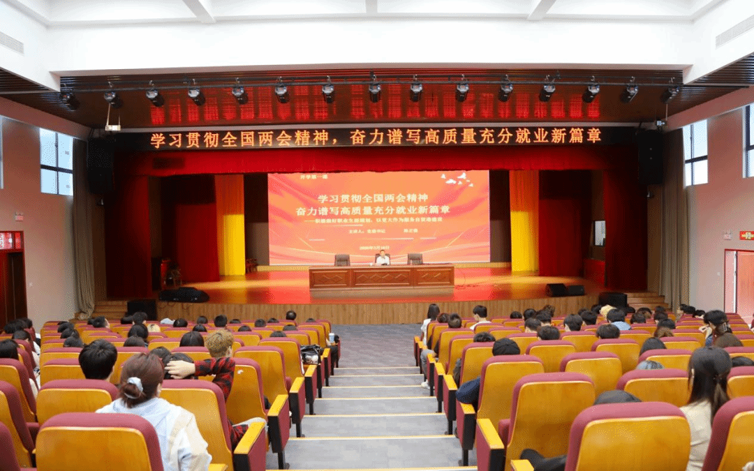 3月16日,学校党委书记陈正强以《学习贯彻两会精神 奋力谱写高质量充分就业新篇章》为题,为2026届毕业生讲授“开学第一课”。