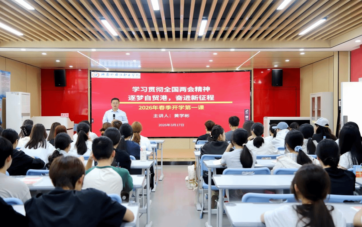 3月16日和17日,学校党委书记陈正强,党委副书记、校长黄学彬讲授2026年春季学期“开学第一课”。校领导勉励广大学子胸怀“国之大者”,学好专业知识,锤炼过硬本领,勇担时代使命,争做海南自贸港的筑梦者和建设者。两堂生动的“开学第一课”在海外院学子间引发强烈共鸣,大家纷纷表示,必将以更加饱满的热情和昂扬的姿态,奋力书写无愧于时代的青春篇章。