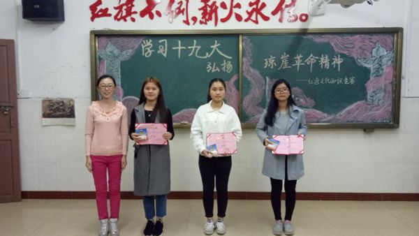 为学习贯彻十九大精神,不忘初心,牢记使命,弘扬琼崖革命传统,铭记历史,传承爱国情怀,我院思想政治理论课教学科研部于12月5日20:00—21:30在第二教学楼“23年红旗不倒读书协会”活动室,举办了红色文化知识竞赛。此次比赛由思想政治理论课教学科研部主办,由“23年红旗不倒读书协会”承办,并邀请了思政部周清云主任、周丽萍老师和赵佳钰老师担任评委。