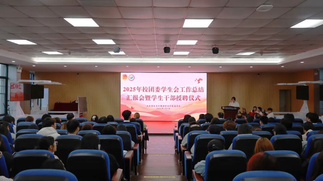 为总结工作成效、凝聚奋进力量,进一步推动校团委学生会工作提质增效,1 月 4 日下午,我校2025年校团委学生会工作总结会议暨团学干部受聘仪式在图书馆四楼 VR 教室顺利举行。校团委陈仕榜书记、韩剑丰副书记、组织宣传科副科长韩琪、周宵老师、唐欣老师出席会议。
