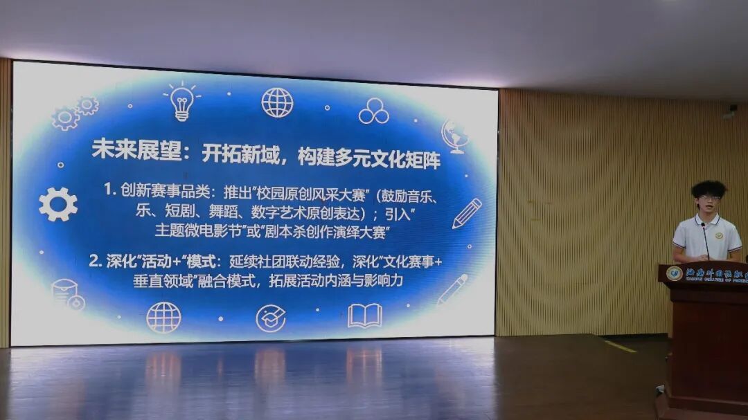 最后,校团委书记陈仕榜对会议内容进行总结发言。他对校团委学生会各部门一年以来取得的亮眼成绩给予了充分肯定,并对校团委学生会未来工作提出了三点要求:一是要继续强化思想政治引领,把牢正确方向;二是要紧密围绕师生需求,提升服务实效;三是要勇于推进改革创新,加强自身建设。他强调,全体团学干部应在日常工作中注重磨练、勤于观察、深入体验,积极团结带领广大同学,以更加昂扬的热情和扎实的行动,共同推动我校团学工作不断迈向新台阶。