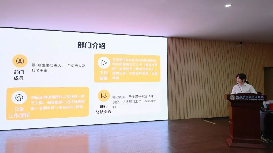 随后,团学干部代表许智金在发言中回顾了个人成长历程,并对集体工作进行了总结,勉励各团学干部在新的一年中要以更严谨务实的态度履职,主动倾听师生心声、积极创新工作形式,打造有温度的团学集体。