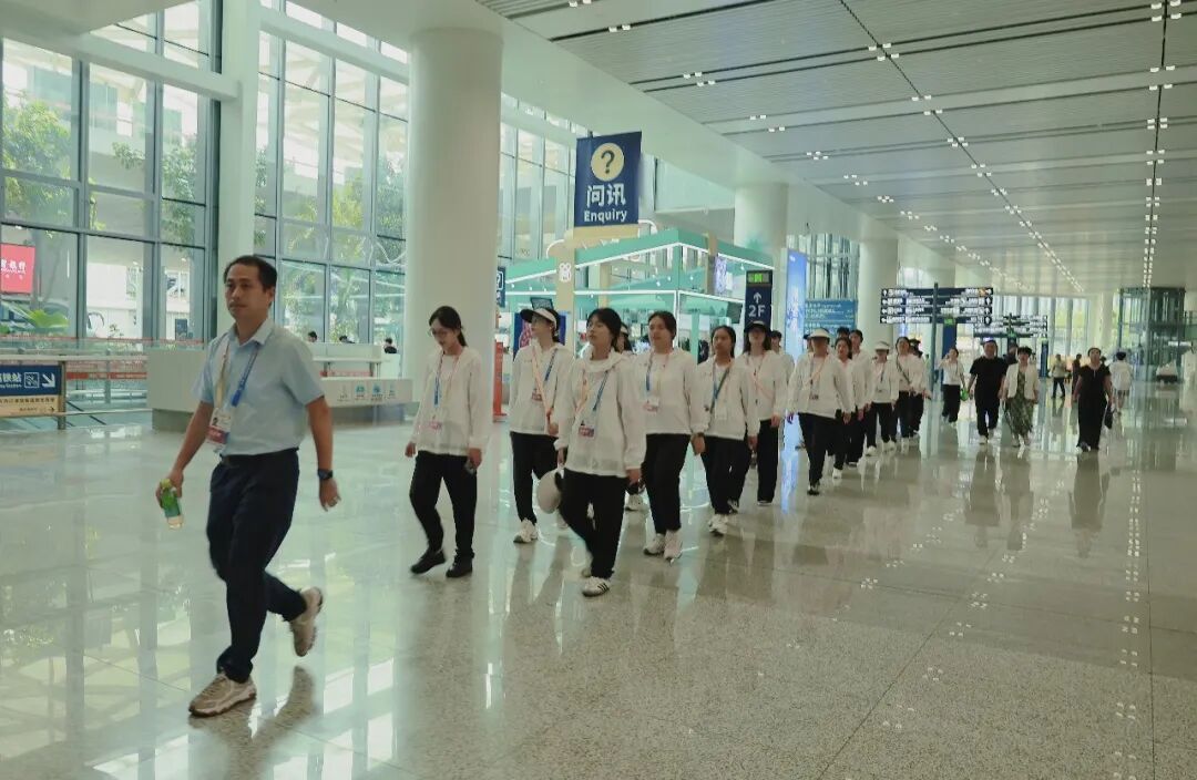 为精准做好服务保障,海外院“小椰青”志愿者们率先开展场地熟悉工作。他们沉浸式穿梭于展会场馆各个区域,细致梳理场地动线、明确岗位点位,逐一走遍展区每一处角落,反复核对服务流程,将各项服务细节、路线指引牢牢记在心中,确保开幕后能为参展嘉宾、市民群众提供高效、精准的引导服务,全力打通服务“最后一公里”。