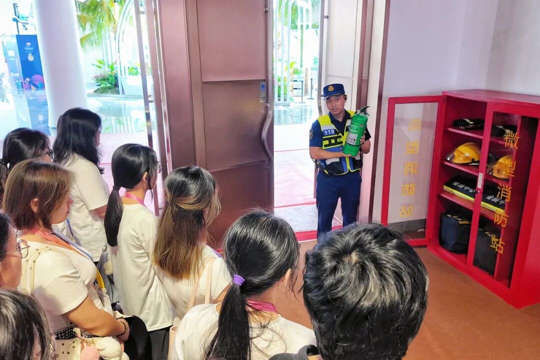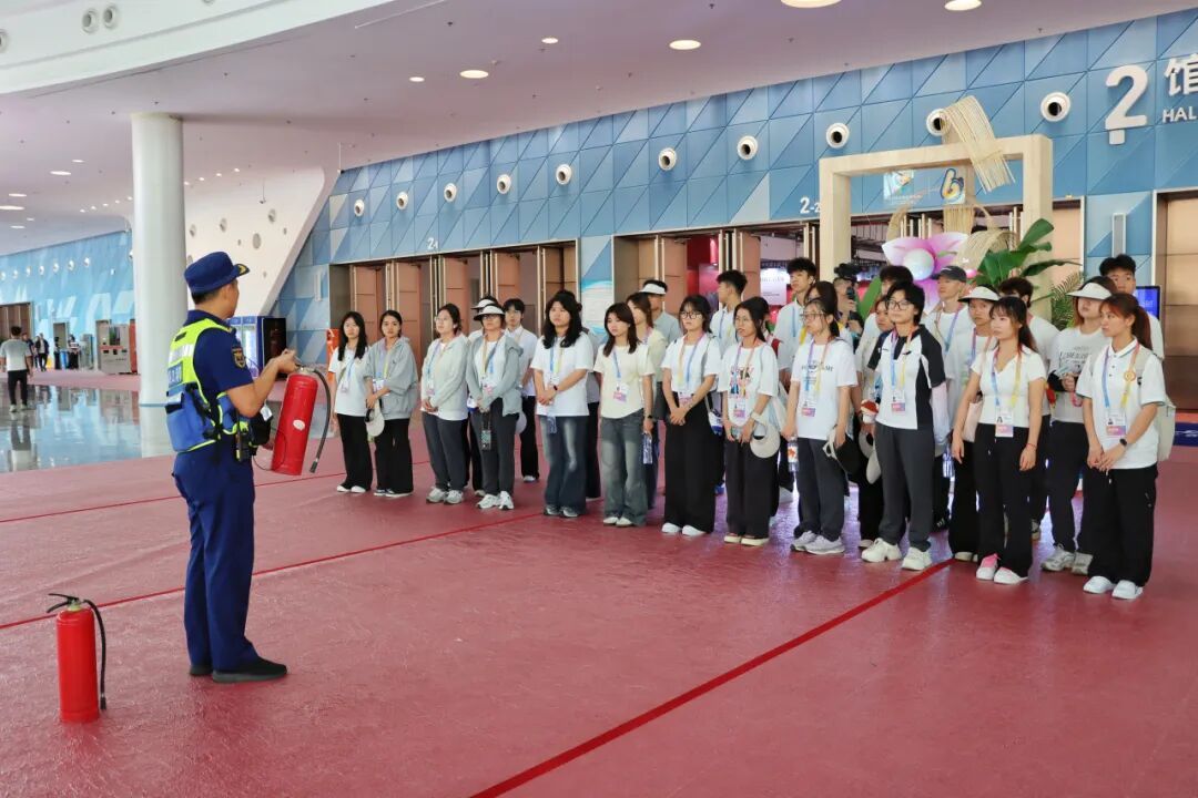 安全是盛会顺利举办的底线。志愿者们专门开展消防安全知识专项培训,系统学习疏散通道分布、应急处置流程、消防器材使用等核心要点,深刻牢记安全责任,强化应急处置能力。每一次认真聆听、每一次细节记录,都凝聚着“小椰青”守护盛会安全的决心,为消博会筑牢安全防线。