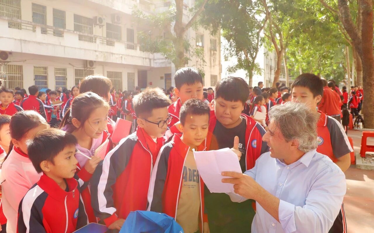 近日,我校联合海南省教育研究培训院开展的“外教进校园,推动小学英语教育国际化”活动圆满完成秋冬季阶段工作,这样温暖的互动场景在琼中、临高、儋州等多地校园不断上演。