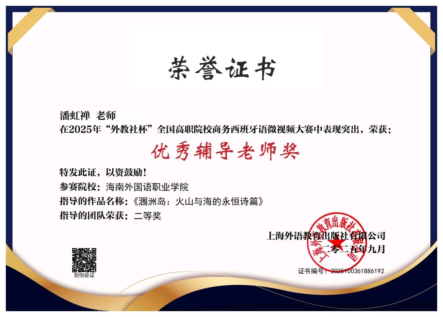 近日,2025年“外教社杯”全国高职院校西班牙语短视频大赛获奖名单正式公布。我校应用西班牙语专业学生团队凭借作品《涠洲岛:火山与海的永恒诗篇》,从全国13所高职高专院校的参赛作品...