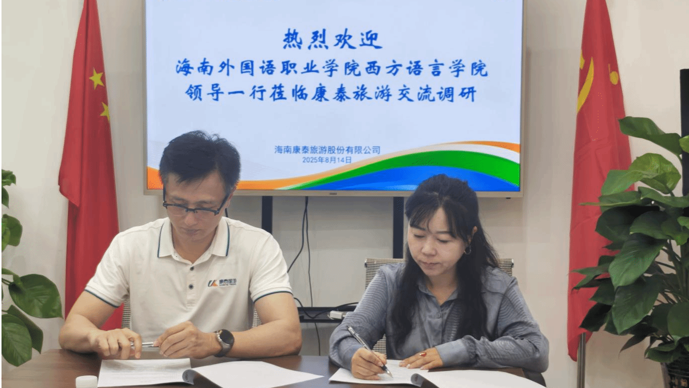 本次调研促成实质性成果——双方签署《校企合作协议》。根据协议,将挂牌设立“康泰旅游-海南外国语职业学院校外实训实习就业基地”,为我院学生提供实习与就业直通渠道,特别是在即将开通的马德里、俄罗斯包机相关项目中优先录用我院学生。此外,双方也初步达成共识,将共同开发《旅游西班牙语实务》教材,并安排企业导师定期入校开展讲座或实践教学。