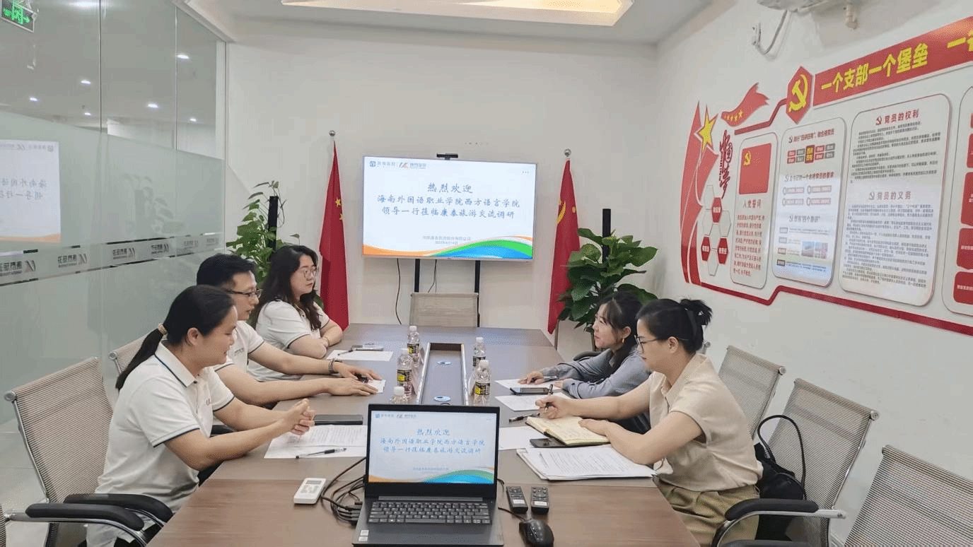 为深化产教融合,服务海南自贸港建设,提升小语种人才培养质量,2025年8月14日,西方语言学院院长刘茂媛率西班牙语专业负责人潘虹禅一行,赴海南康泰旅游股份有限公司开展专项调研并达成重要合作成果。