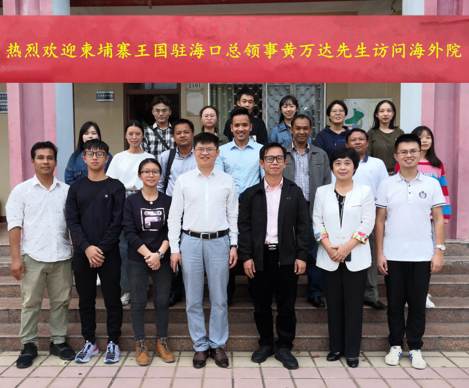 2019年11月9日下午,柬埔寨王国驻海口总领事馆总领事黄万达访问海南外国语职业学院。学院国际交流中心主任饶其康博士、东语系主任郭艳萍教授接待了黄万达总领事一行。柬语专业教师陈俊源、外教王虎老师及全体柬语专业学生出席座谈会。