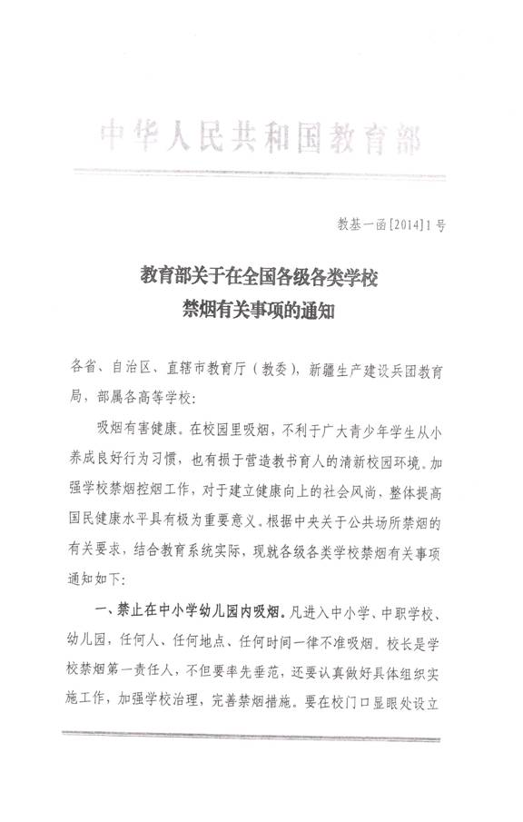 海南省教育厅转发教育部关于在全国各级各类学校禁烟有关事项的通知