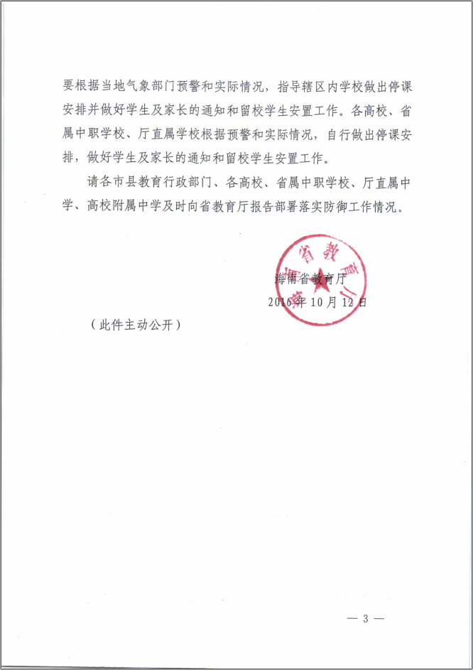 转:海南省教育厅关于启动防汛IV级应急响应行动的通知