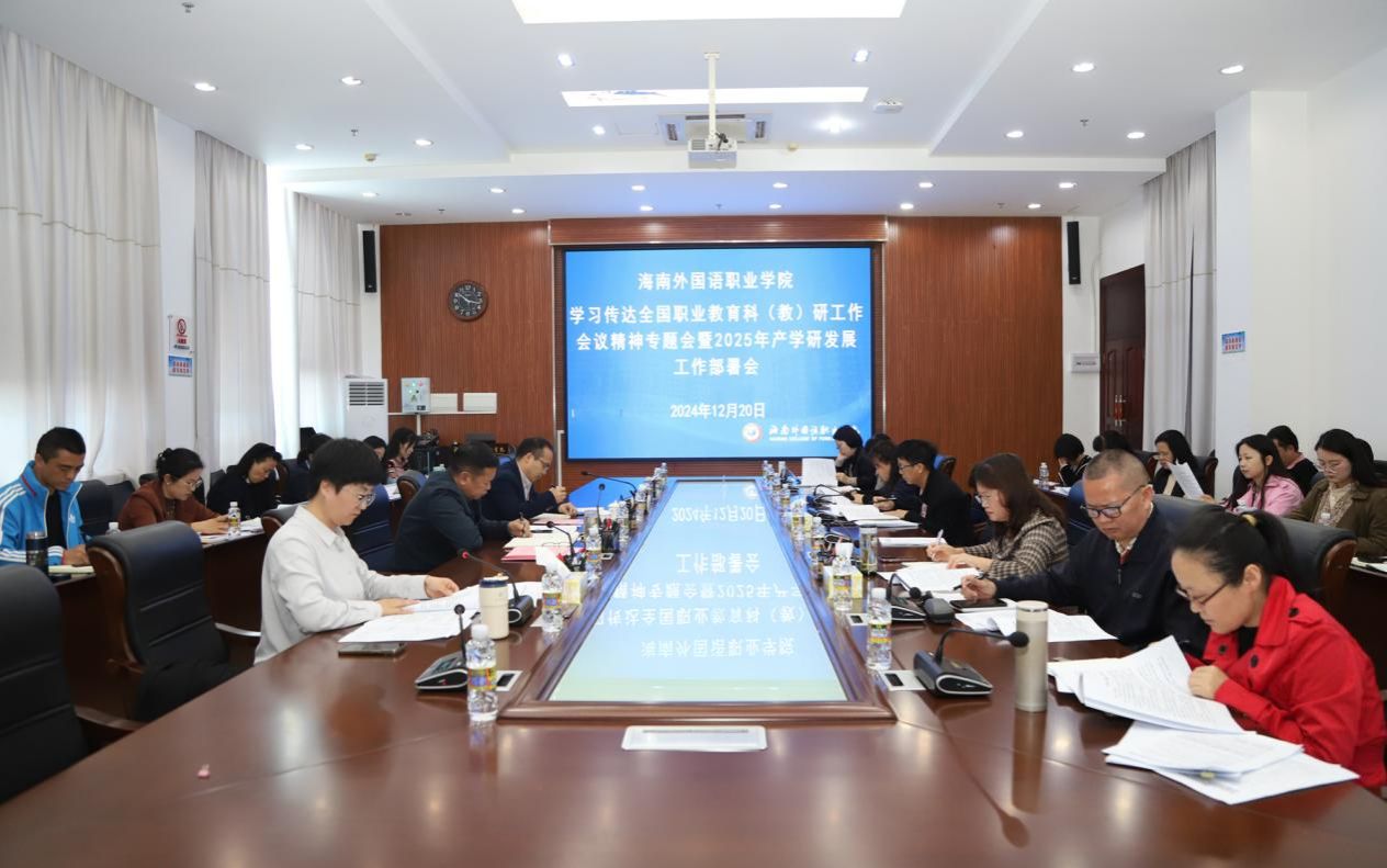 会上,产学研发展中心副主任孙博领学了全国职业教育科(教)研工作会议相关材料,英语学院、西方语言学院、国际旅游学院主要负责人结合工作实际就如何贯彻落实会议精神进行了交流与发言。产学研发展中心先后解读了《海南外国语职业学院科研机构管理办法》《海南外国语职业学院产教融合校企合作管理办法》和《海南外国语职业学院产教融合校企合作工作室管理办法》,为工作夯实制度基础,并部署了2025年全校产学研发展的重点工作。