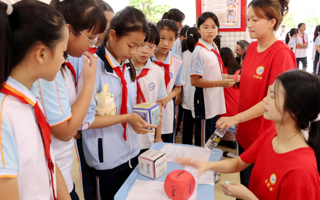 活动现场洋溢着热烈与欢快的气氛,学生们参与热情高涨。我校志愿者充分发挥专业优势,提供了高质量的教学服务。我校外籍教师的课程独具匠心,教学方式巧妙融合了趣味性与教育性,极大地提高了学生的学习兴趣。这种以兴趣为出发点的教学方法,使孩子们对英语学习产生了浓厚的兴趣,取得了显著的教学成果。