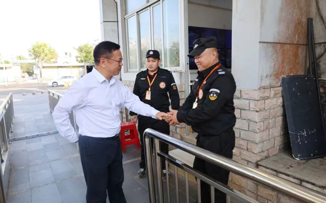 黄学彬首先来到学校总值班室、校园警务室等岗位,与坚守一线的安保人员亲切握手交谈,详细询问寒假及春节期间的值班值守安排、校园安全巡查等情况。他代表学校向所有在节日期间坚守岗位、无私奉献的教职员工表示衷心感谢,叮嘱大家要继续以高度的责任心站好岗、守好职,同时也要注意劳逸结合,合理安排好假期生活。