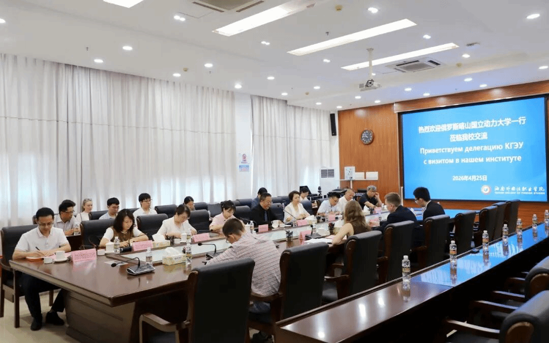 座谈会上,陈义华对代表团的到访表示热烈欢迎,并介绍了学校的办学历史、发展理念及国际化办学特色。他表示,中俄友谊源远流长,教育合作是两国人文交流的重要组成部分。学校深耕特色办学,坚持“外语+专业+人工智能”复合型人才培养模式,愿与喀山国立动力大学深化交流对接,围绕数字经济、智能制造、对外俄语等重点领域,携手探索校际合作新路径、拓展合作新空间。