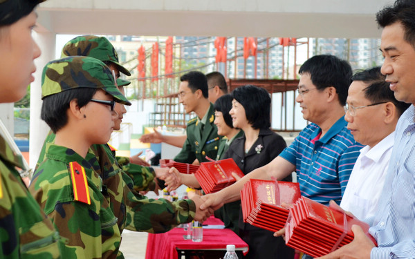 总结大会对在本次军训中涌现出的优秀个人、优秀方阵、优秀教官等先进集体和优秀个人进行了表彰。会上,学生代表发言畅谈本次军训的感受与心得,文昌市公安边防支队云倩偌队长作了总结性发言。