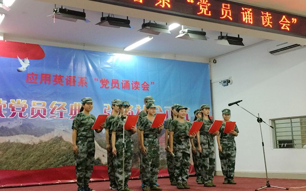 随着一个个优秀共产党员的名字一次次被提起,一篇篇动人事迹被深情昂扬地歌颂,现场不时响起热烈的掌声。最后,由应用英语系党总支主要负责人林鹏带来的配乐诗朗诵《可爱的中国》把诵读会气氛推向高潮。