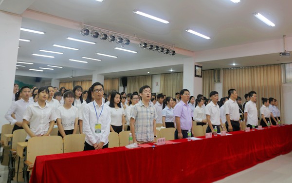 大会在雄壮的中华人民共和国国歌《义勇军进行曲》声中开幕。紧接着,4名国旗队队员护卫着团旗入场,由35名新团员代表面向团旗以铿锵有力的誓言宣布自己加入了中国共产主义青年团。