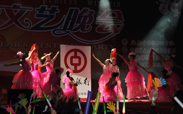 图片5:中国银行文昌市支行的舞蹈表演《中行红》