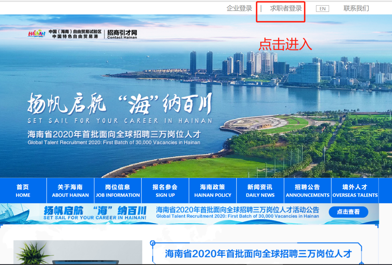 完成注册/登录后,跳转至主页面,并点击【求职者登录】