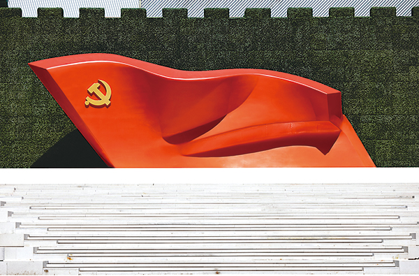 据了解,在最初构思时,创作者曾考虑创制旗帜的各种造型,如在旗帜上以浮雕展现党史百年的奋斗历程,如夸张旗帜刚刚升起之际所产生的飘扬动感,等等。但最终还是回到旗帜造型本身,在造型与基座上做文章。这是一个由繁至简、由叙事到象征的提炼过程。