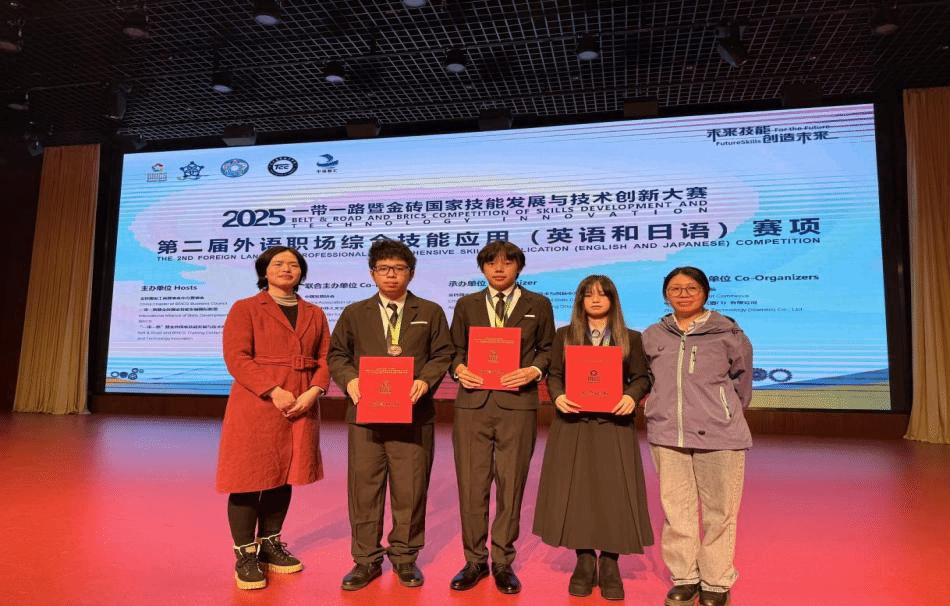2025年11月2日,2025年一带一路暨金砖国家技能发展与技术创新大赛第二届外语职场综合技能应用日语赛项全国总决赛圆满落幕。经过激烈角逐,我院参赛队伍凭借扎实的语言功底、出色的综合应用能力和精彩的现场表现,从全国众多高校优秀代表队中脱颖而出,最终荣获全国二等奖(银奖)的优异成绩。