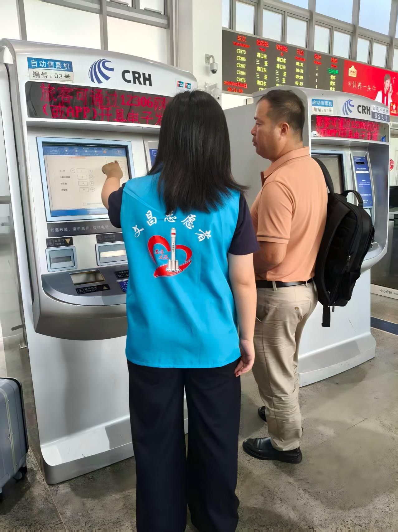 在服务过程中,我发现前来车站的旅客大多是“候鸟老人”。他们中的许多人不太熟悉手机购票的操作流程,于是我和其他志愿者便会耐心地教他们如何使用手机购票。每当帮助他们解决问题后,总能收到一句温暖的“谢谢”。候车时,老人们还会和我们聊天,热情地分享家乡的美景与趣事,邀请我们有机会去他们的家乡走走看看。他们常说:“现在有你们这些年轻人教我们用手机买票,真是太贴心了!”每一次听到这样的感谢,我的心中都会充满幸福感与成就感,也让我更深切地体会到,志愿服务的意义就藏在这些平凡却温暖的互动里。这份“赠人玫瑰,手有余香”的充实感,远比单纯的闲暇时光珍贵得多。它让我明白,青年的价值正体现在这些看似微小的奉献中,点点微光汇聚起来,便成了足以温暖寒冬的蓬勃力量。