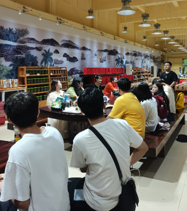 参观与体验结束后,师生们被邀请进入大厅,陈绍海经理热烈欢迎大家的到来,并表示由于目前受疫情影响旅游为淡季,但是一旦恢复正常,从印尼来的游客络绎不绝,希望同学们来这里实习,发挥印尼语言特长,与来自印尼的游客交流。