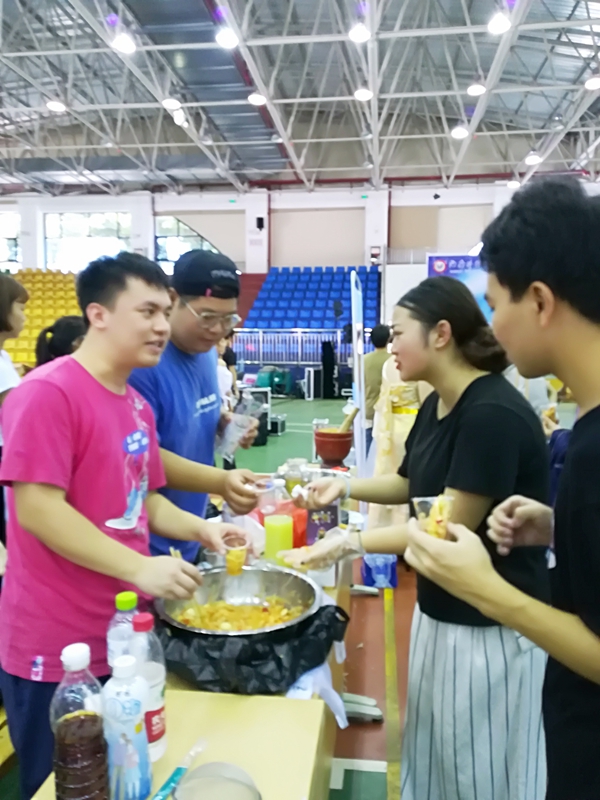 学院领导徐畅副书记和来宾也来到学生社团展位,品尝学生亲手制作的日本寿司、韩国紫菜包、泰国青木瓜沙拉。还有考生、学生及家长也品尝到了具有各国特色的美食,为这次校园开放日增加了色彩。同时学院其他社团成员在舞台上载歌载舞展示才艺,将气氛推到了高潮,让很多来宾驻足观赏,充分体验到学院丰富多彩的校园文化。