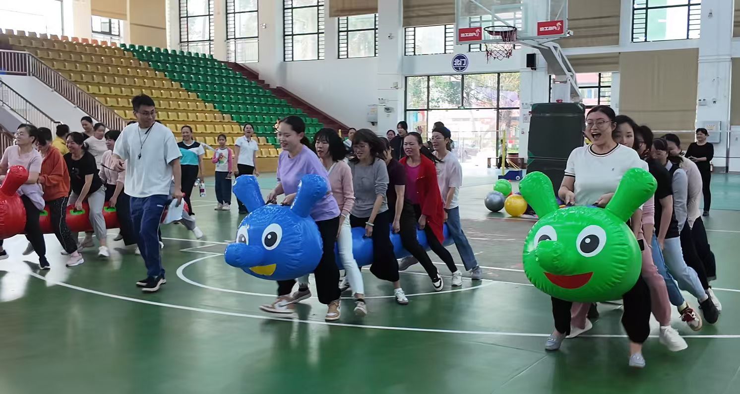 比赛过程中,大家精神饱满、热情高涨,默契配合、奋勇争先。在袋鼠送西瓜项目中,老师们化身活力“袋鼠”,蹦跳向前、趣味十足;珠行万里考验团队默契,大家凝神聚力、平稳传递,在协作中感受同心同行的力量;智传呼啦圈灵活巧妙,大家身姿轻盈、配合流畅,尽显灵动与智慧;无敌风轮滚滚气势十足,团队携手并进、步调一致,展现出强大的集体战斗力;母鸡下蛋欢乐搞笑,现场掌声、笑声此起彼伏;同心协力大闯关与趣味背夹球更是将团结协作精神展现得淋漓尽致,大家相互鼓励、彼此支持,在比拼中增进情谊,在协作中凝聚力量。
