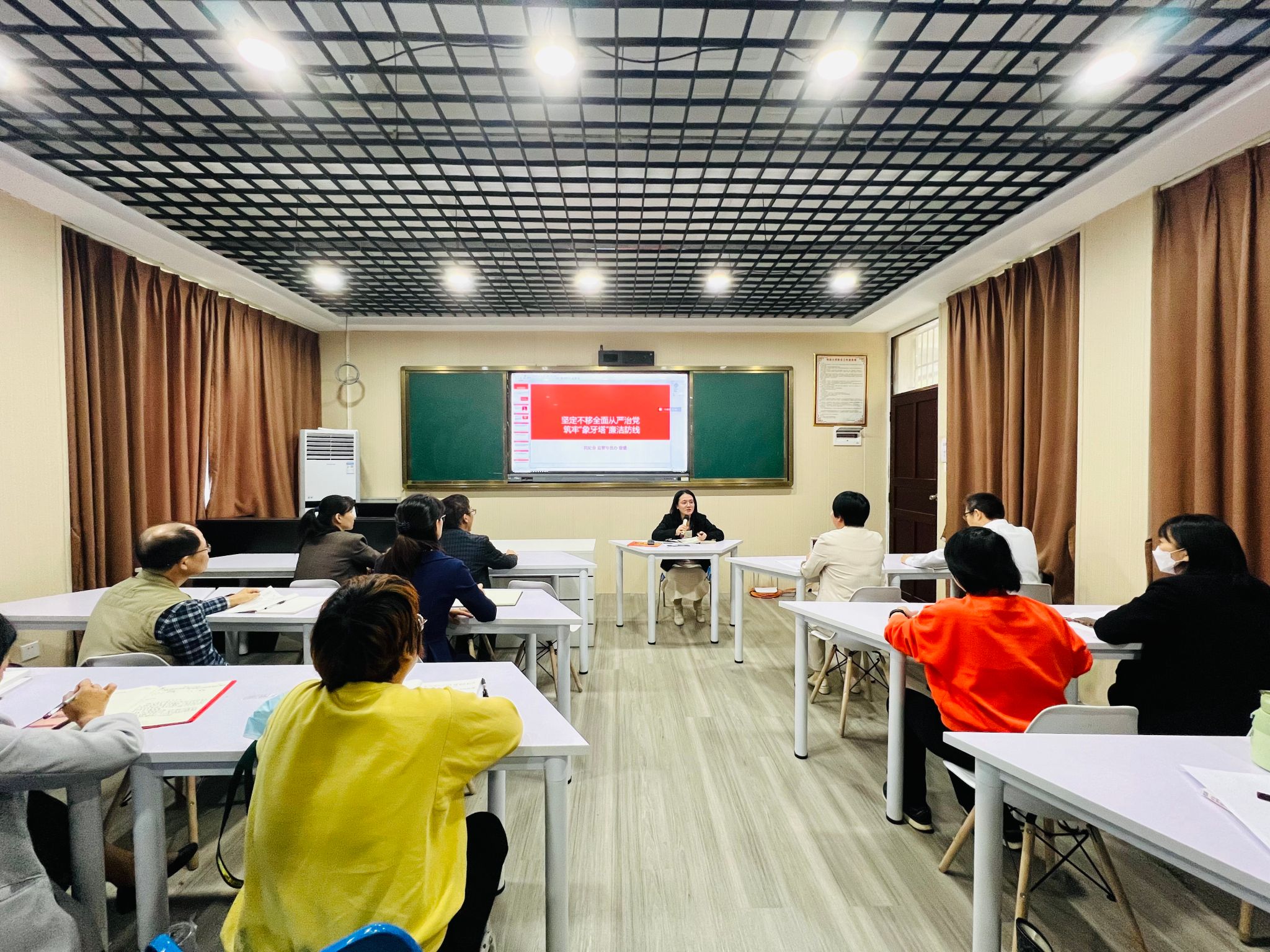 为推动学习贯彻习近平新时代中国特色社会主义思想主题教育走深走实,进一步夯实广大党员教师的思想道德基础,12月28日下午,学校党委委员、纪委书记、监察专员曾盛以《坚定不移全面从严治党筑牢“象牙塔”廉洁防线》为题,给国际旅游学院全体党员教师上了一堂专题党课。