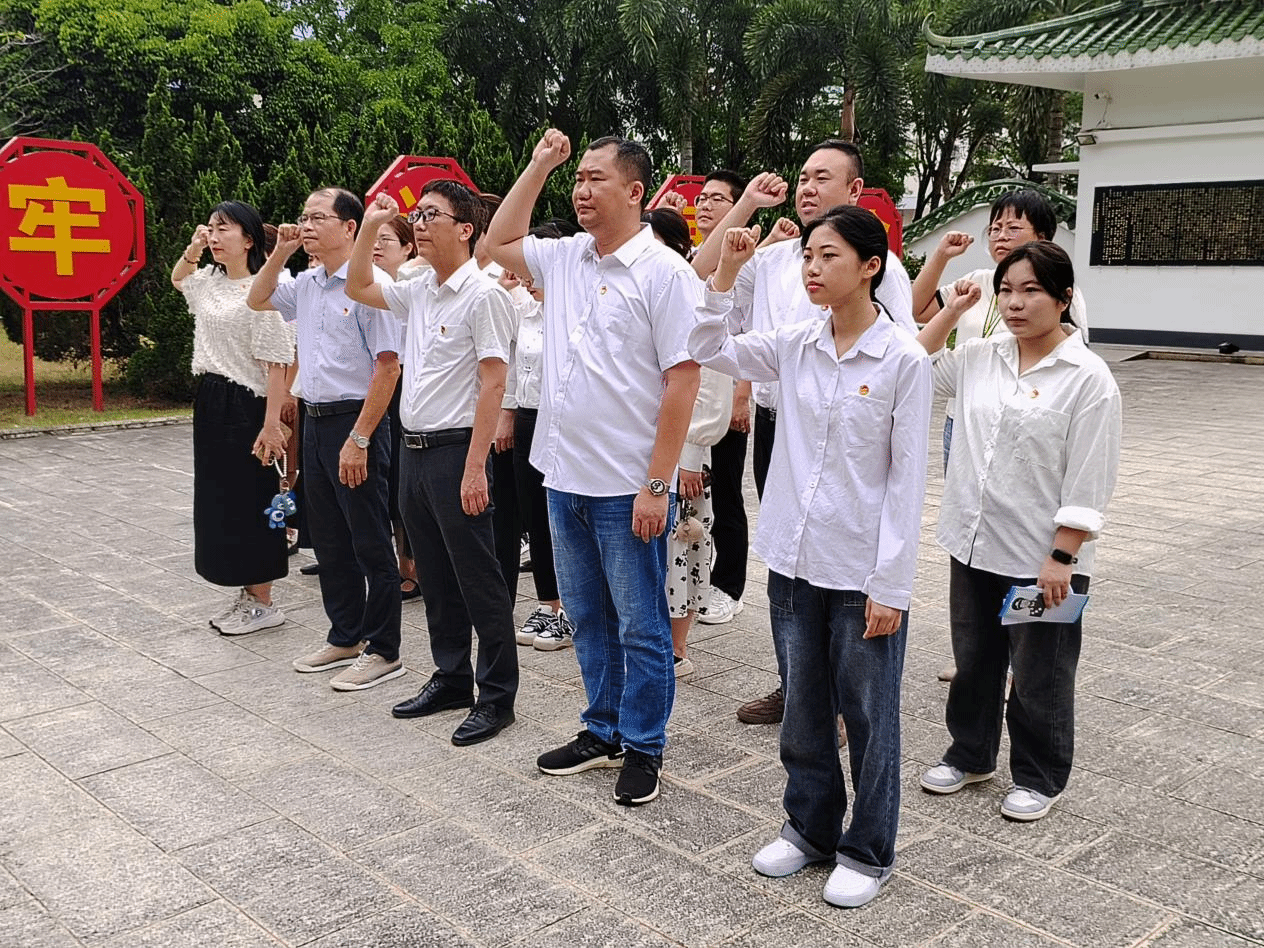 活动中,全体党员首先来到张云逸将军铜像前,重温入党誓词,在党总支副书记周群林的带领下,全体党员面对庄严鲜红的党旗,举起右臂,郑重重温入党誓词。铿锵恢弘的誓词,铿锵有力的承诺,久久回荡,激发了全体党员的自豪感和信念感。