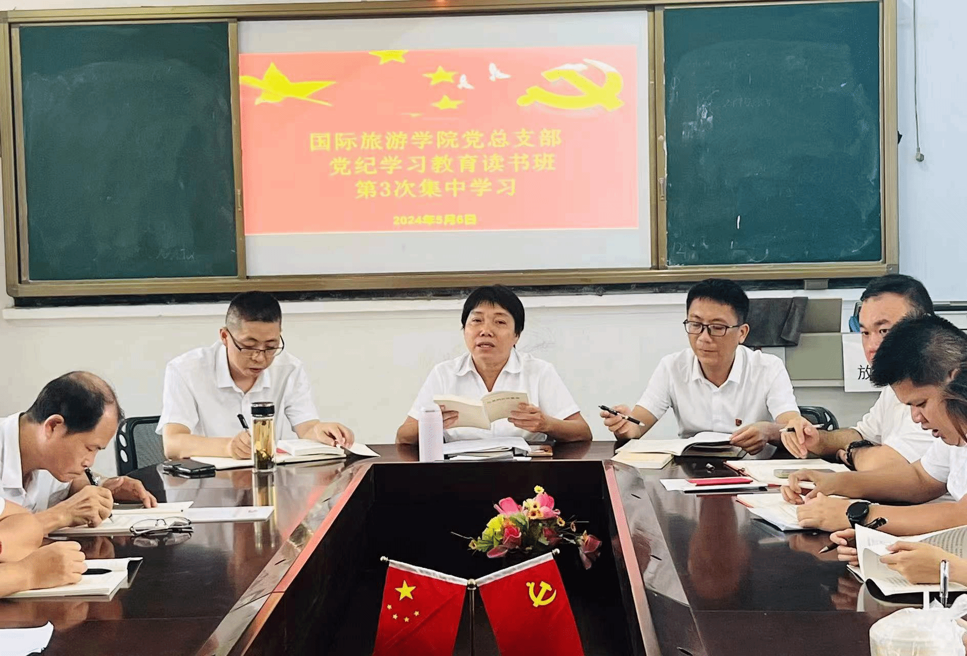 4月23日至5月7日,国际旅游学院举办了5次党纪学习教育读书班学习会,读书班通过集中学习、个人自学等形式,对党纪知识进行深入系统学习,进一步提高了党员干部的党性修养和纪律意识。学院党政负责人、全体党员出席会议。