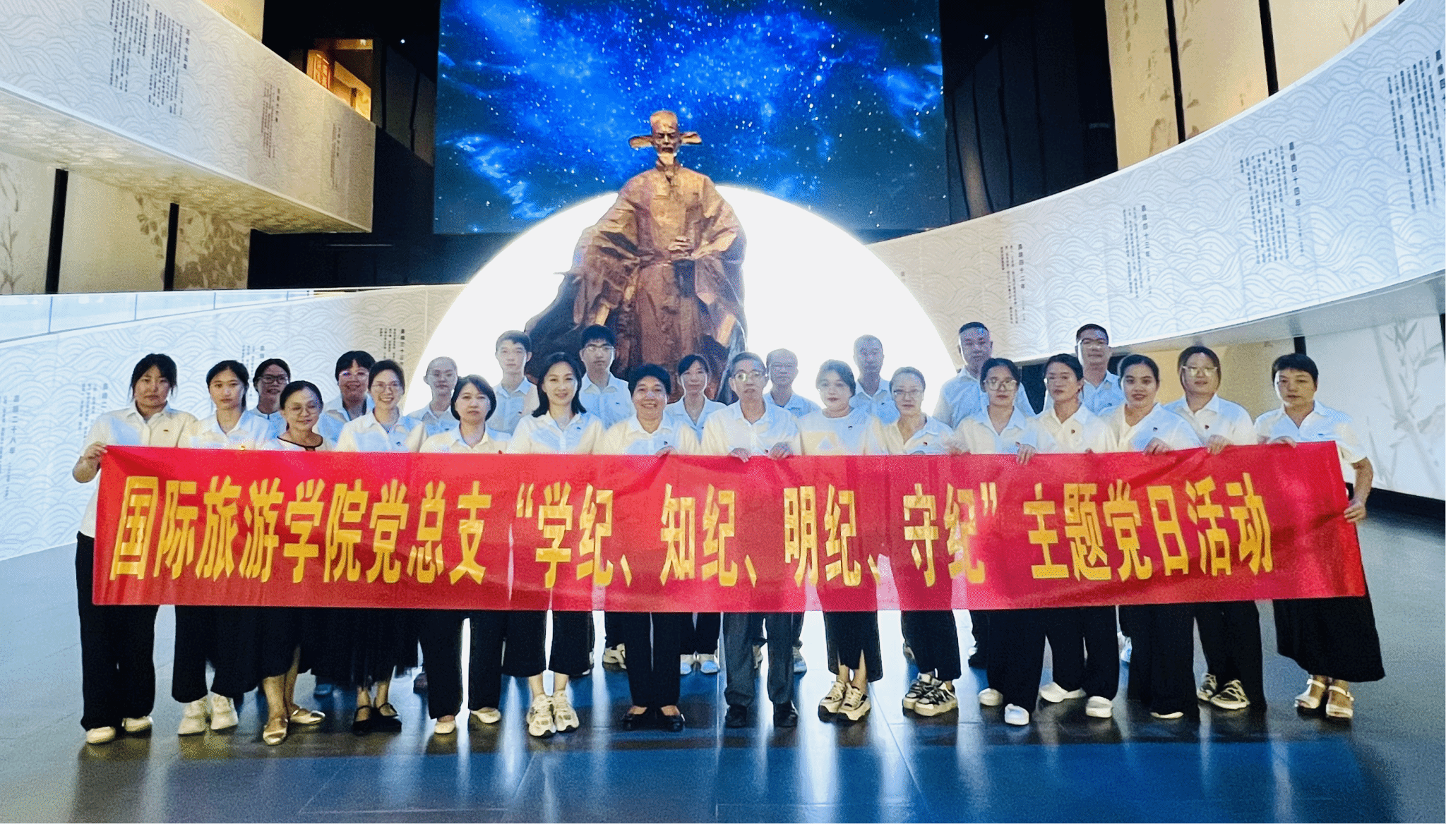 在中国共产党成立纪念日即将到来之际,国际旅游学院于2024年6月25日组织全体党员开展了“学纪、知纪、明纪、守纪”“七一”主题党日活动,旨在通过参观海瑞文化公园实地接受廉洁文化教育,深化党员对党的历史和廉洁文化的认识,强化党员的廉洁守纪意识,推动党纪学习教育走深走实。
