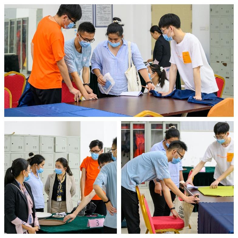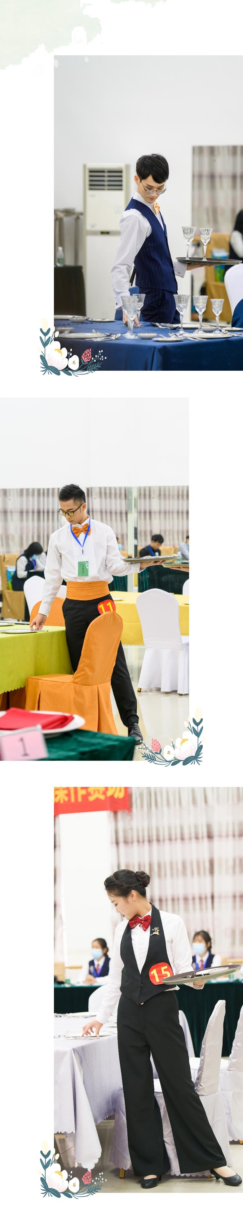 杨郭、苏南、杨若冰同学在西餐宴会摆台环节中的精彩表现。