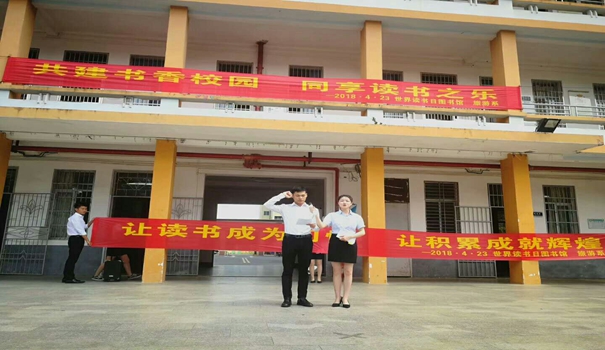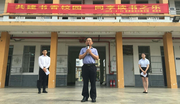 随后旅游系学生王颖作为学生代表宣读读书倡议,倡议旅游人要确立一种信仰:“阅读是生命不可缺少的一个组成部分,阅读是幸福、快乐、精彩、高尚的人生,让终身学习、毕生阅读成为一种习惯和风尚,成为海南外国语职业学院一道亮丽的风景”。