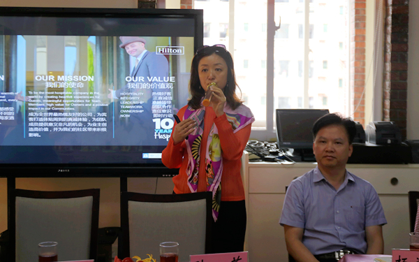 希尔顿集团大中华区南区人力资源总监陆荃在讲话中对我院的热情接待表示感谢,对我院旅游系学生良好的精神面貌和职业素养表示赞叹和欣赏。她高度评价了我院的办学特色,并介绍了希尔顿集团在与高校合作方面好的做法和经验,希望在今后能与我院更进一步合作、共同发展。