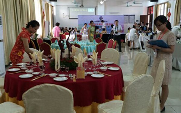 4月17日,2014海南高职院校技能大赛“中餐主题宴会设计”赛项在海南经贸职业技术学院举办。比赛内容以中餐主题宴会设计为主线,涵盖台面创意设计、菜单设计、餐巾折花、宴会摆台、斟酒等内容,分为理论知识测试、现场专业技能比赛和英语口语测试三大部分进行。我系选派3名同学参加角逐,分别获得2个二等奖和1个三等奖的好成绩。