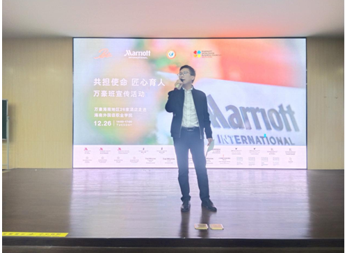 万豪国际集团海南区域26家酒店人力资源相关负责人,我院党总支书记林明霞、副书记周群林、学院副院长谢孟出席宣讲会,我院200余名师生代表参加宣讲会。