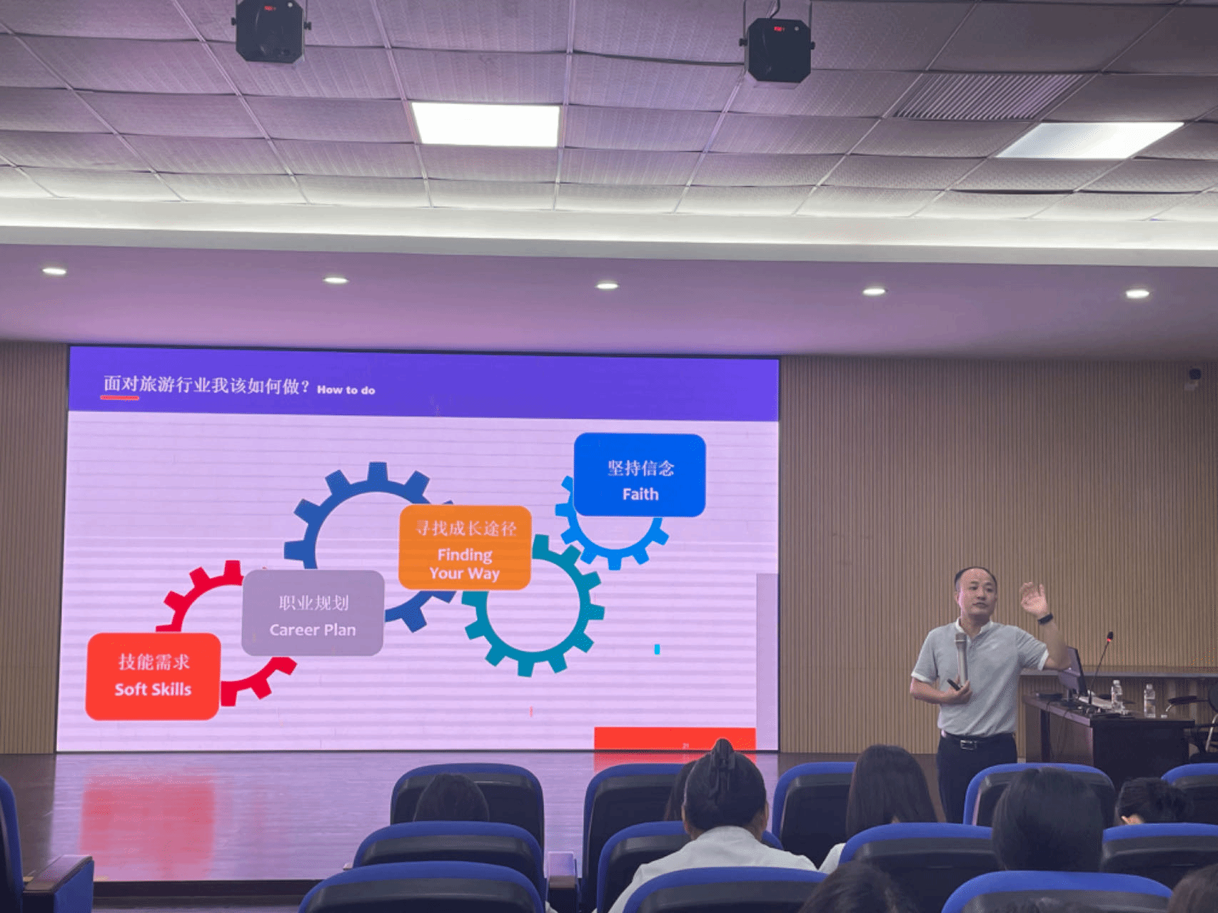 本次讲座于2024年5月6日下午15:30在图书馆4楼VR教室进行,由梁雪琴老师主持,22旅游管理、22连锁经营与管理、23旅管201、23旅管202 这4个开设了《智慧旅游运营实务》课程的班级参加。