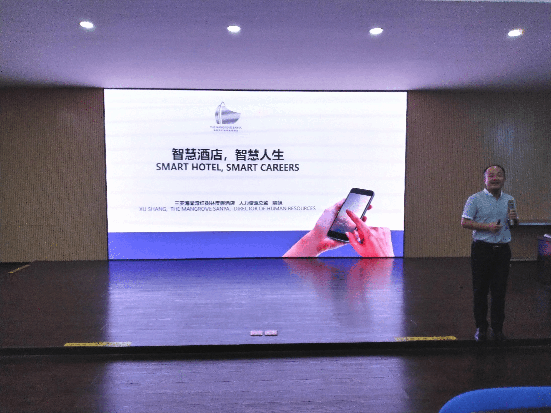 随着旅游业的蓬勃发展和旅行者对个性化、高品质服务的需求不断增加,智慧酒店成为满足这些需求的关键环节。智慧酒店作为旅游行业的重要组成部分,通过引入先进的技术和创新的管理模式,将传统酒店转变为智能化、数字化、网络化的智慧空间。智慧酒店正逐渐展现出其在行业发展中的重要性和引领作用,为此我院特邀三亚海棠湾红树林度假酒店人力资源总监商旭在职业教育活动周作“智慧酒店,智慧人生“的专题讲座。